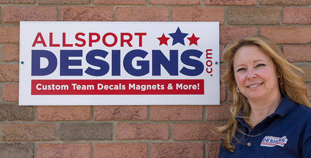 AllSportDesigns.com is a division of SignDesignWooster.com in Wooster, Ohio, a 40+ year old National Award Winning commercial sign shop. We started as a commercial sign shop with the emphasis on design in 1981 as a husband and wife team. In 2007 we won "Small Business of the Year" Award from the Wooster Chamber of Commerce. A lot of changes have occurred since 1981. We have progressed from hand-lettering signs in the 1980's computer-cut vinyl in the 1990's to full digital printing now. Along the way we added several employees. In April 2007, we more than doubled our production facility with the purchase of a 4800 sq. ft. building. We went online in 2006 with our unique designs for youth sports, clubs, and schools which can be made into high quality car decals, car and locker magnets, yard signs and banners with great team discounts! We specialize in fundraising. We have always focused on customer service and quick service as our reviews reflect many thousands of happy customers!