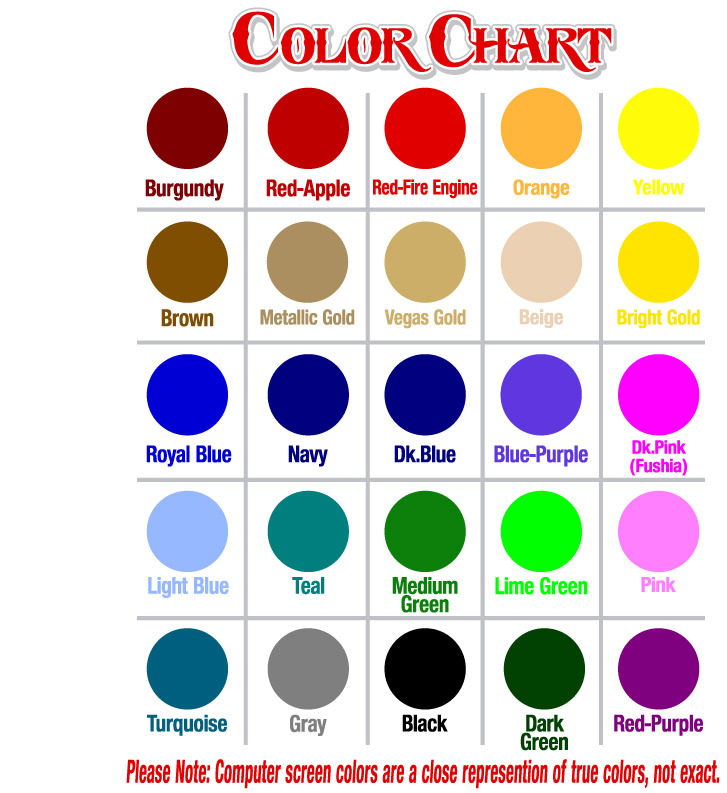*Note: Screen colors are a close representation of colors listed and can vary slightly with actual printed colors.